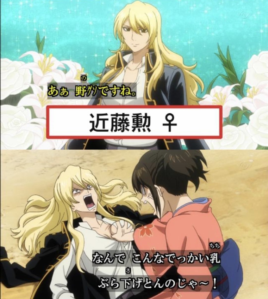 | … | 36925/10/08(水)20:22:00No.1360916881そうだねx3>近藤さんはTSしたら金髪美女だし公式で男前判定なんだよな… |