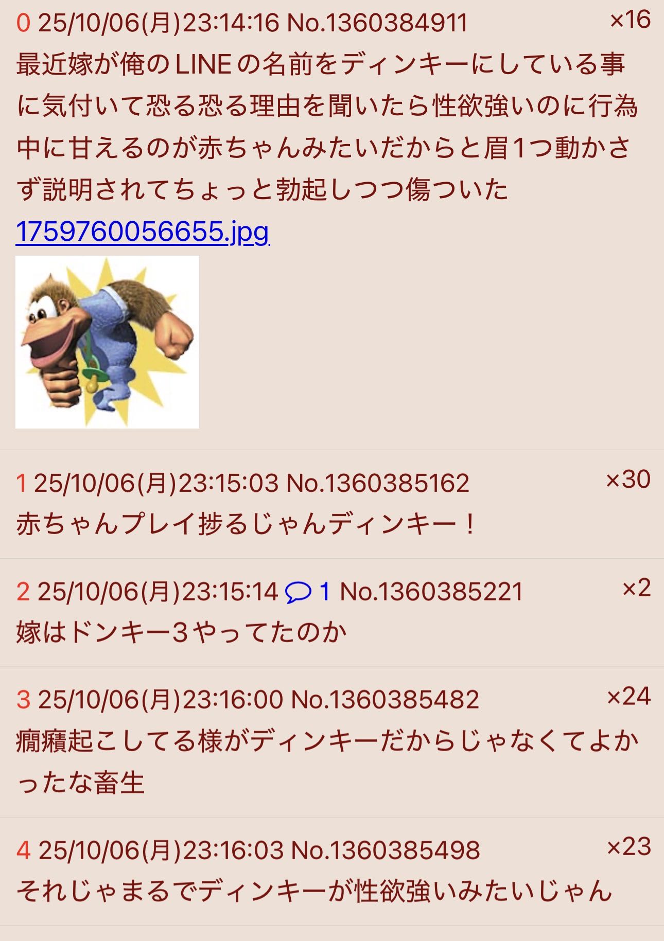 | … | 8325/10/08(水)20:26:01No.1360918800+未プレイでディンキーコングを赤ちゃんだと思える人0人説 |