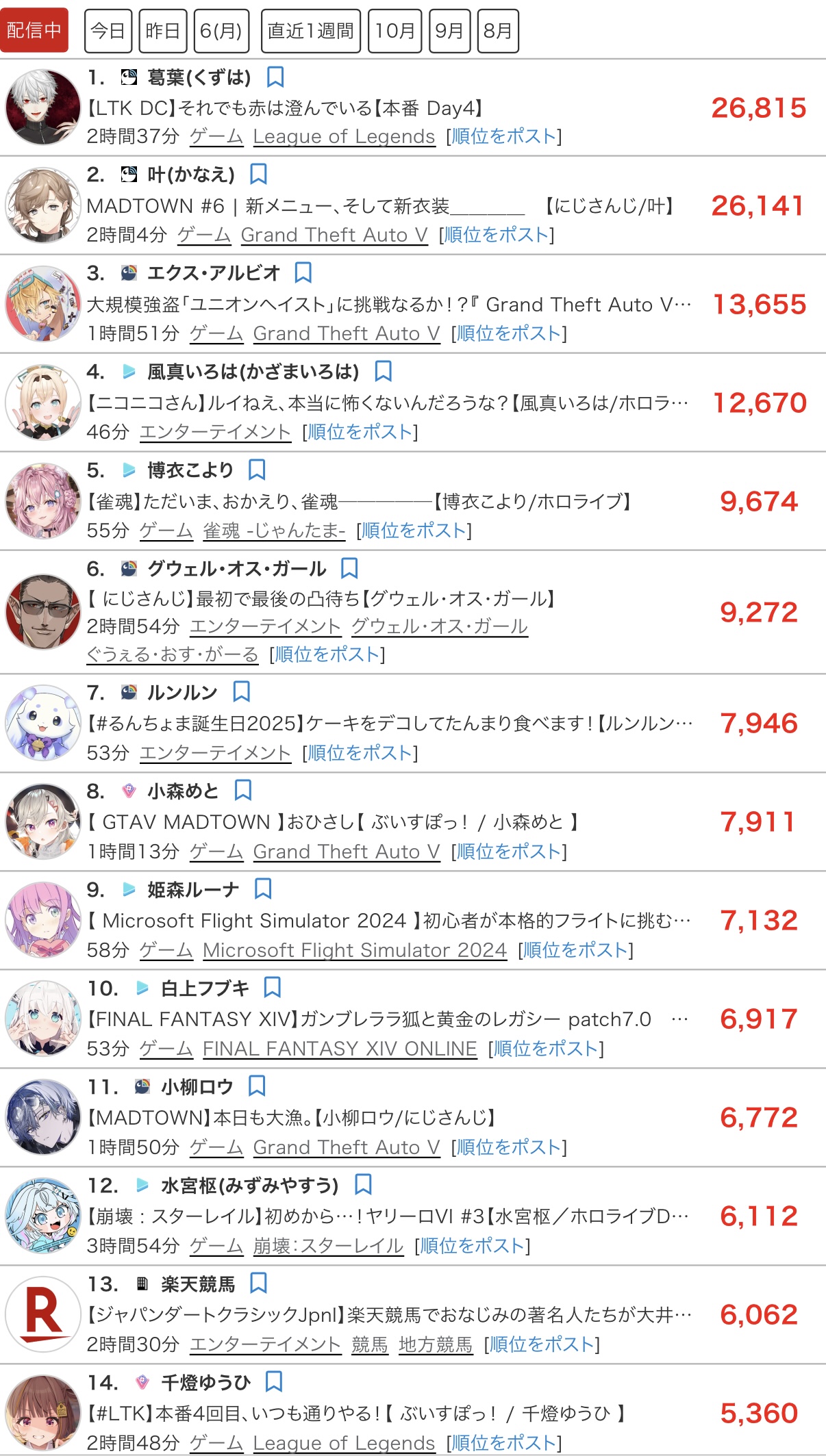 | … | 125/10/08(水)19:58:05No.1360904919+ホロの一軍が配信してないからしょうがない |
