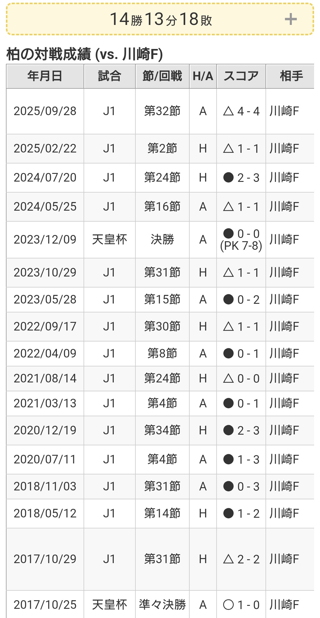 | … | 2525/10/08(水)21:05:11No.1360936131+柏レイソル、対川崎大苦手の歴史に新たな1ページ |