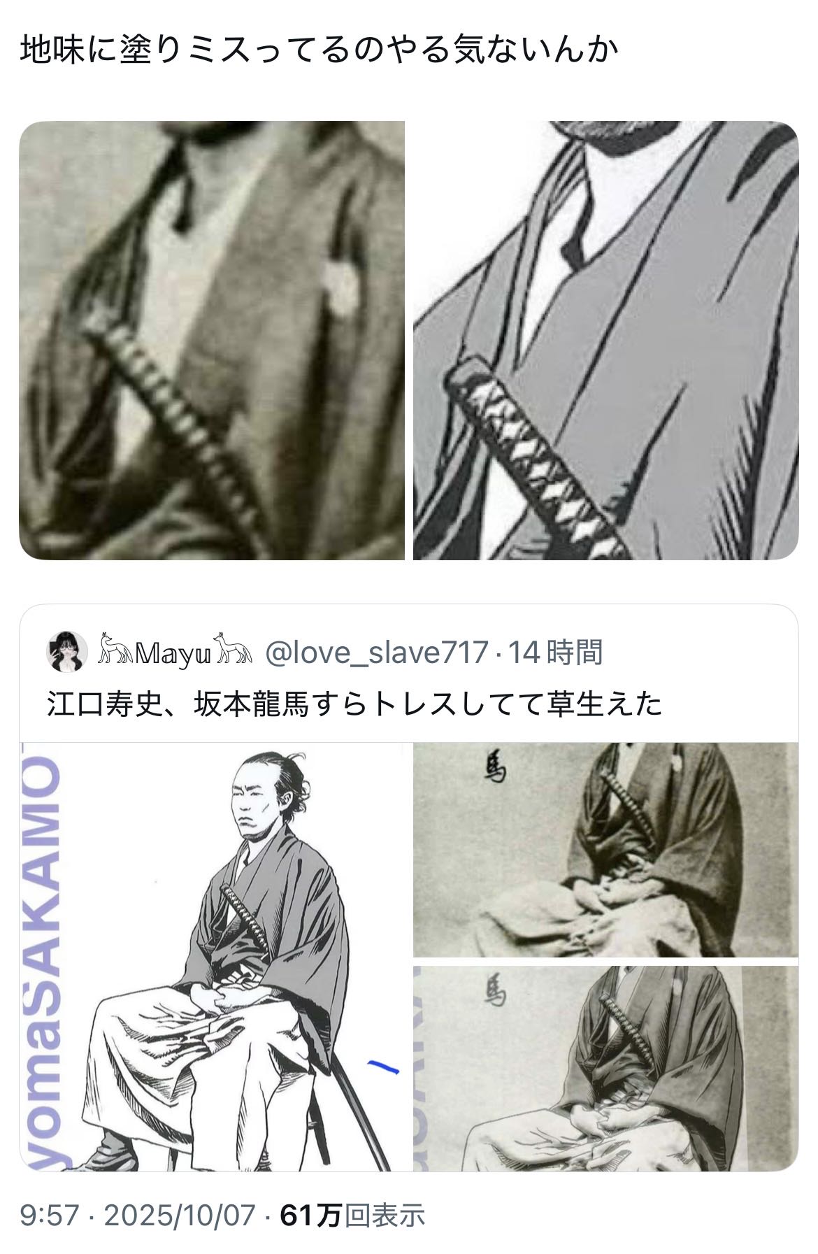 | … | 89025/10/08(水)21:43:10No.1360951396そうだねx1>>>>イラストはまずいけど写真トレスは別にいいだろって発想なんだとは思う |