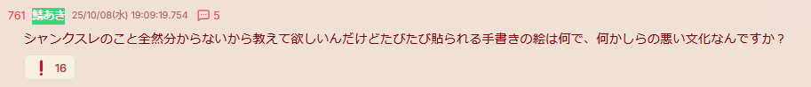 | … | 2525/10/08(水)23:40:41No.1360993807+普段シャンクスレでホロライブのヘイトアート描いているやつがめぶきにも現れて |