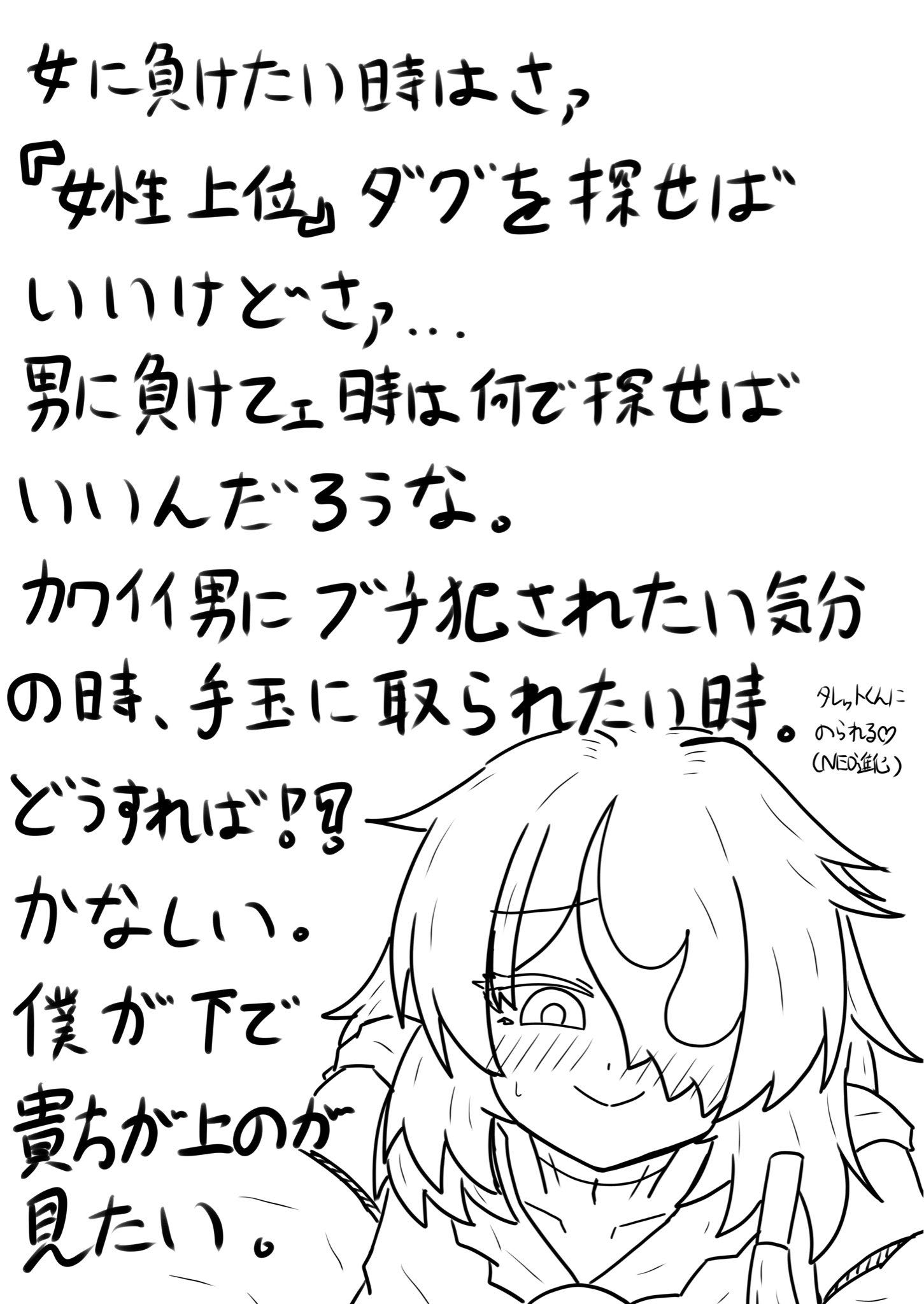 | … | 225/10/09(木)02:01:25No.1361028170そうだねx1>可愛い男に負ける女が見たいならショタおねかなあ |