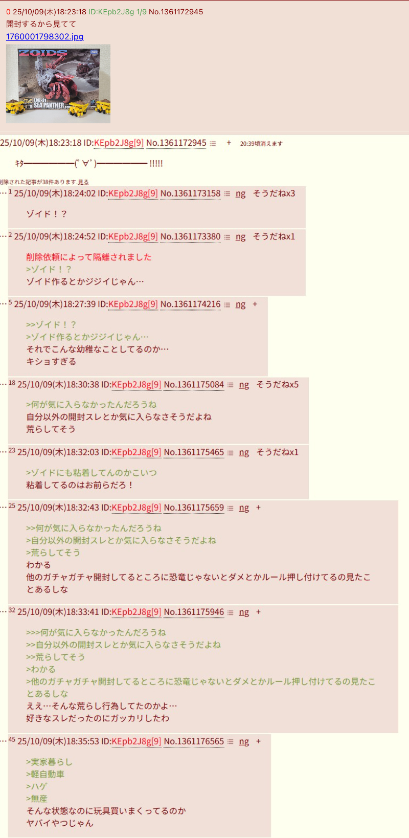| … | 1625/10/09(木)18:30:25No.1361175019+ゾイドにも粘着してんのかこいつ |
