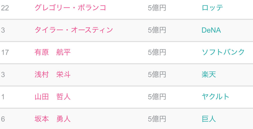 | … | 16225/10/11(土)13:04:32No.1361702211+年俸5億かぁと思って見てみたら結構しんどいメンツだった |