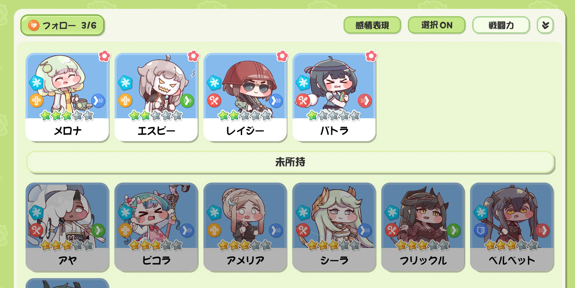 >すみません今の手持ちがこんな感じなので無育成の穴埋め2人突っ込んだ憂鬱パでやってるんですけど