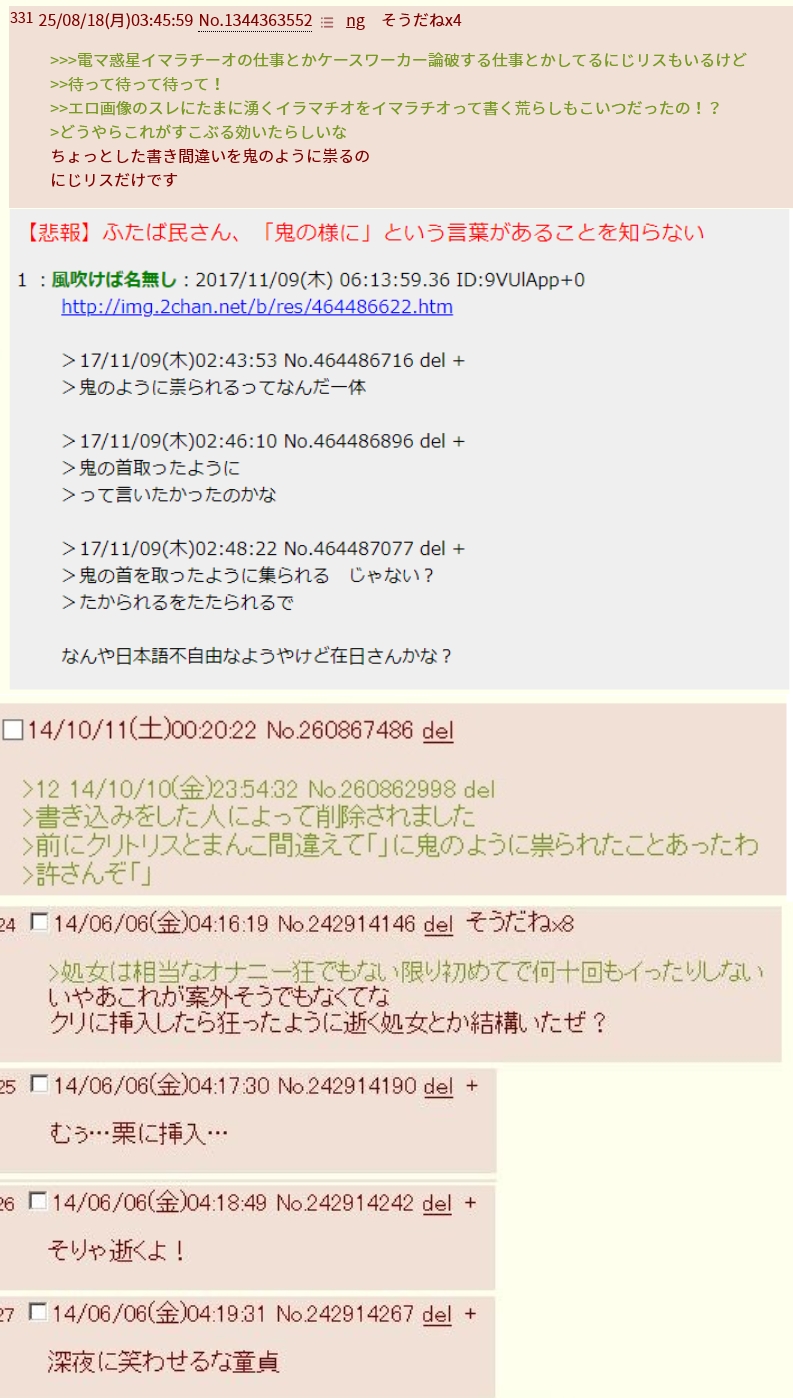 | … | 78625/10/12(日)12:54:25No.1362053728+レス乞食したいあまり普通に裁判所からお手紙来るログ残してるの笑う |
