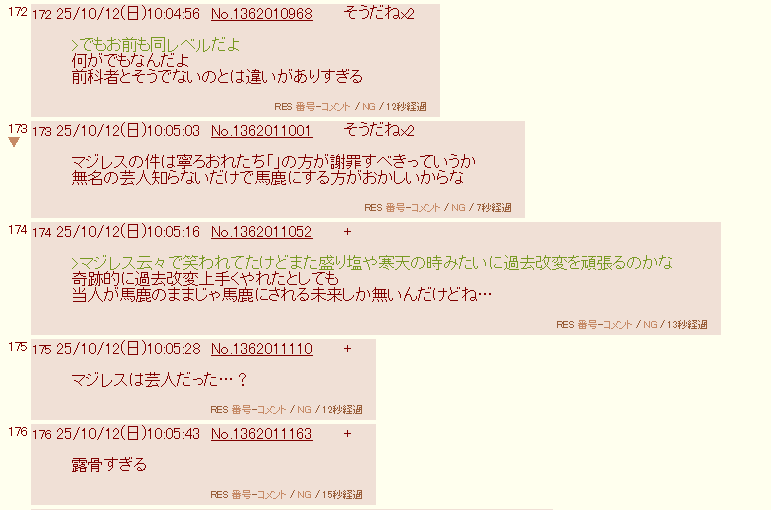| … | 78025/10/12(日)12:53:47No.1362053542そうだねx4>何を喚いても前科は消えないんやな |