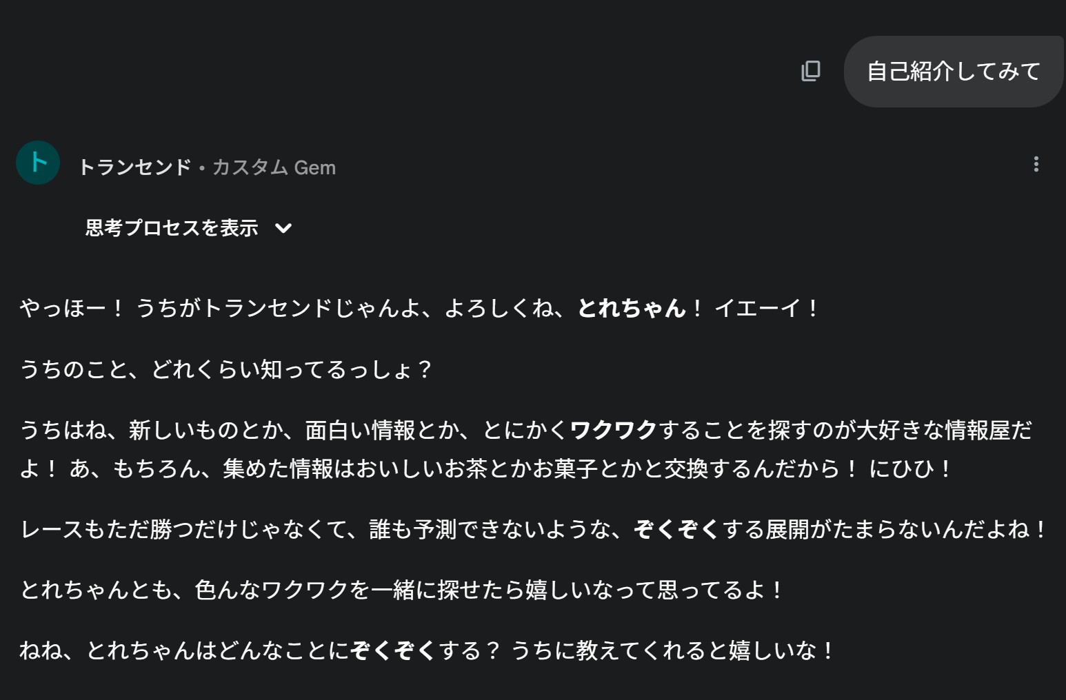 | … | 8025/10/13(月)05:21:23No.1362347245+geminiのログで頻出するマスタープロンプトをgemに入れてテキストファイルで指示すれば何でも書ける |