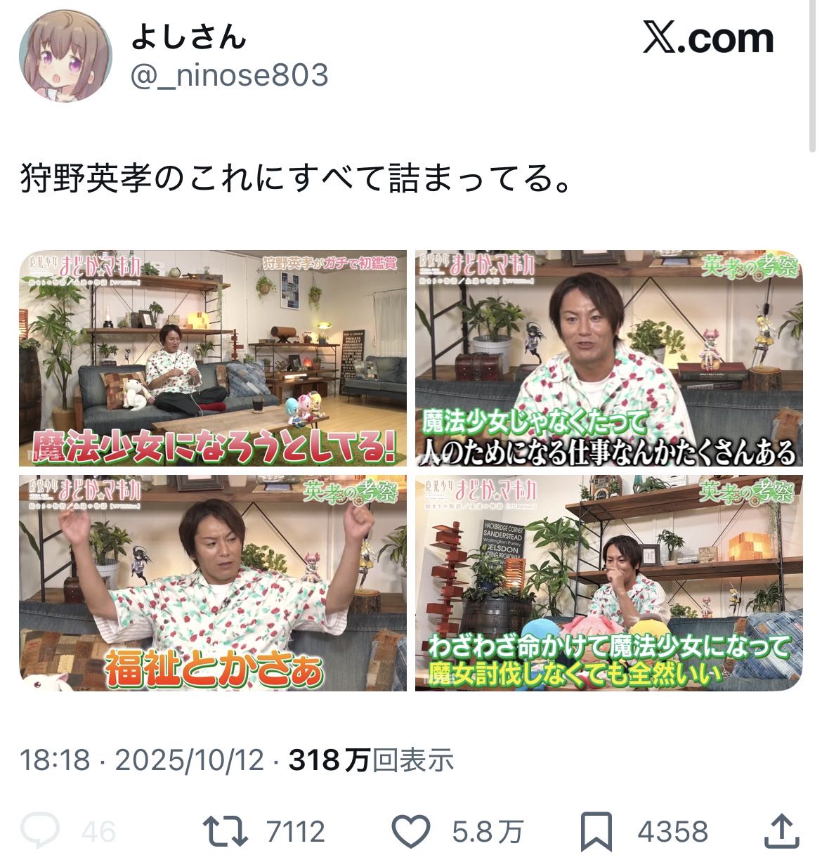 | … | 39025/10/13(月)11:09:51 ID:bq6L0LqsNo.1362387567+>この画像のあとに「でもそうでもして叶えたい願いってのが出てくるんだろうね」「俺はそういうところまで読めてるから」ってドヤ顔で語ってるよ |