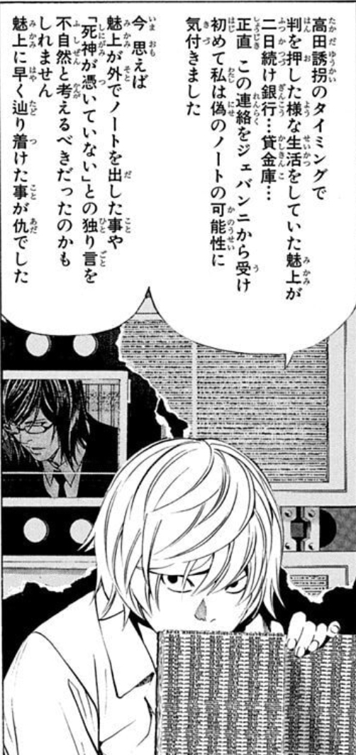 | … | 48325/10/15(水)14:47:41No.1363072278+>魅上が持ってた偽を複製してすり替えて更に貸金庫の本物も複製したんじゃなかったか |