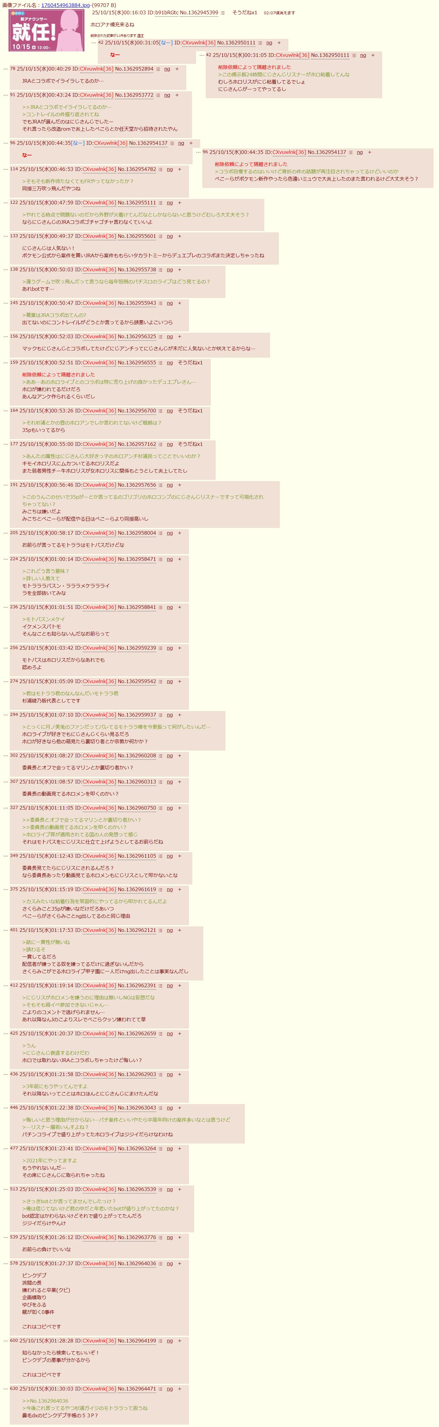 | … | 95625/10/15(水)20:21:45No.1363157562そうだねx5マジで葛葉の件はここでNDFしてもどうしようもないから他所に行ってくれ |