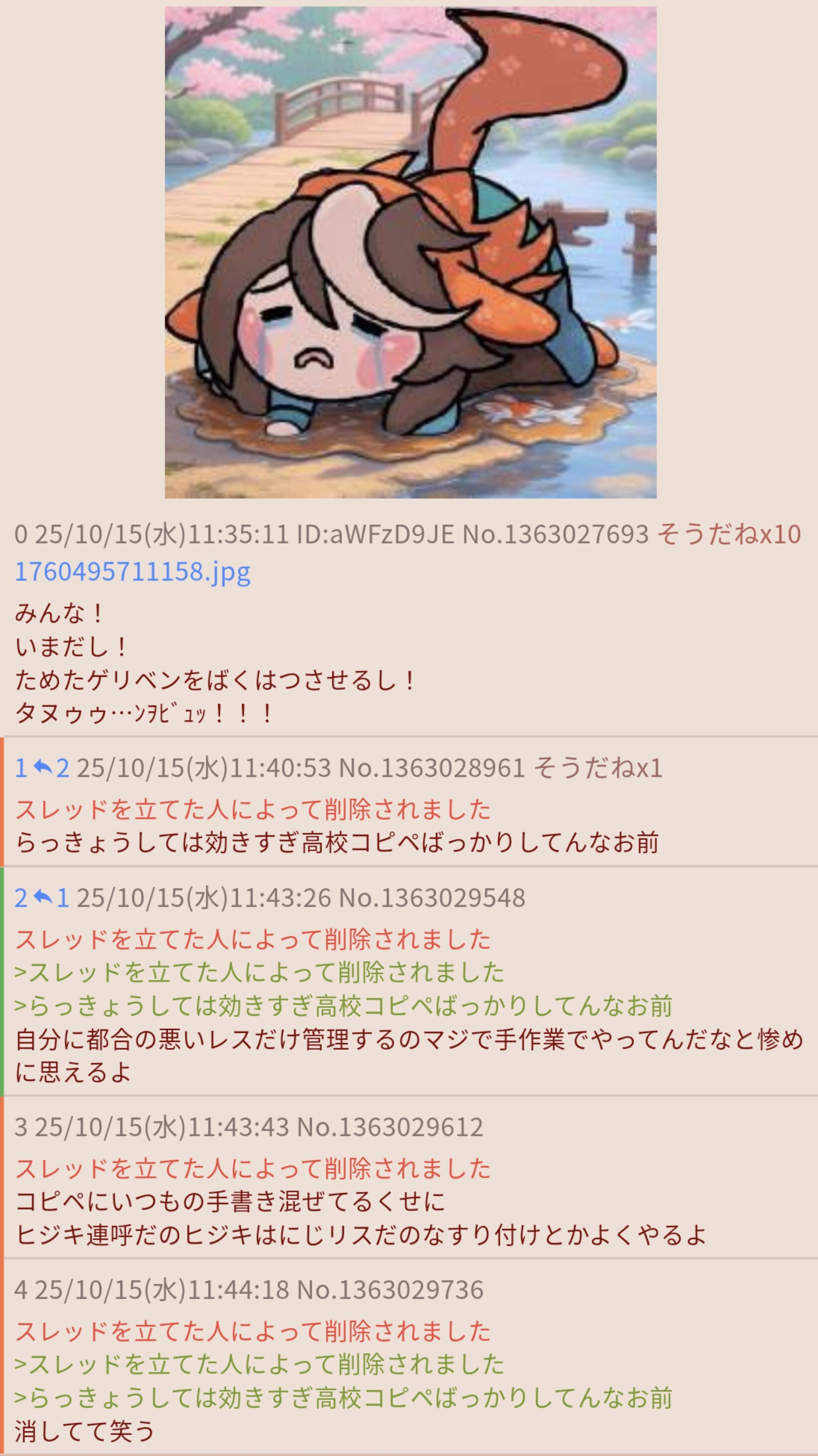 | … | 8025/10/15(水)19:15:29No.1363132763そうだねx2書き込みをした人によって削除されました |