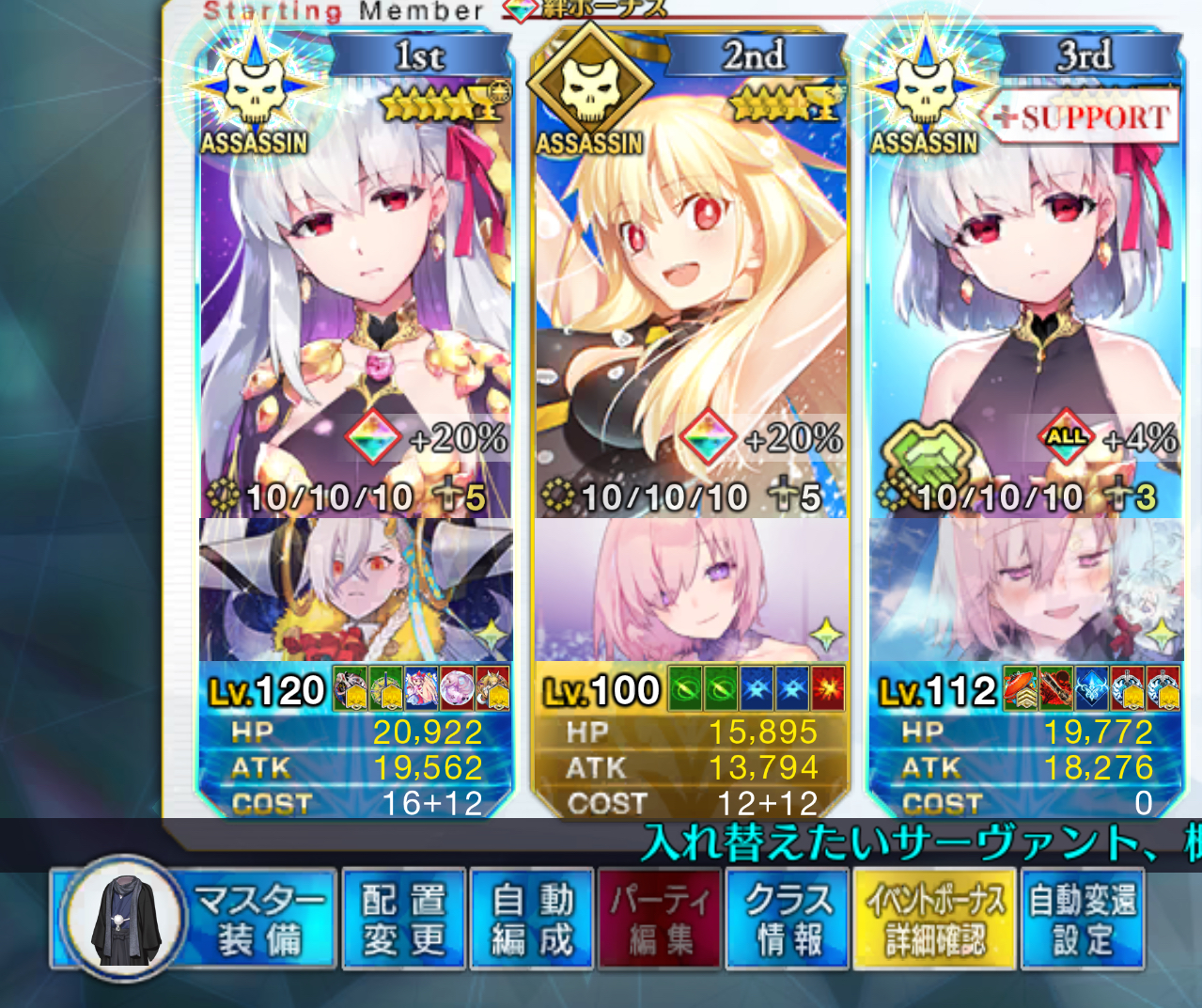 | … | 3625/10/16(木)17:40:56 ID:g0XCqx6cNo.1363387927+>なんでだろう…?即死回避の攻バフ欲しいから自前のカーマちゃん1番前に置いてたりするけどそこが違ったりするのかな |