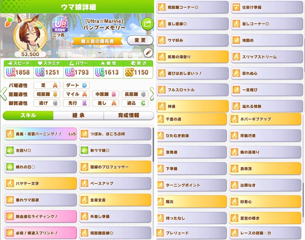 | … | 9225/10/21(火)13:15:39No.1364932710+加速スキルの比重がデカすぎるように感じてきたからスキポを使い切るのも難しいし賢さネイチャもありな気がしてきた |