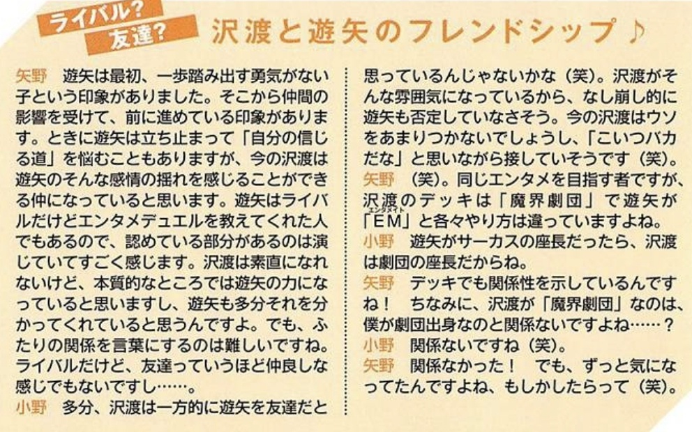 沢渡との掛け合いよかった