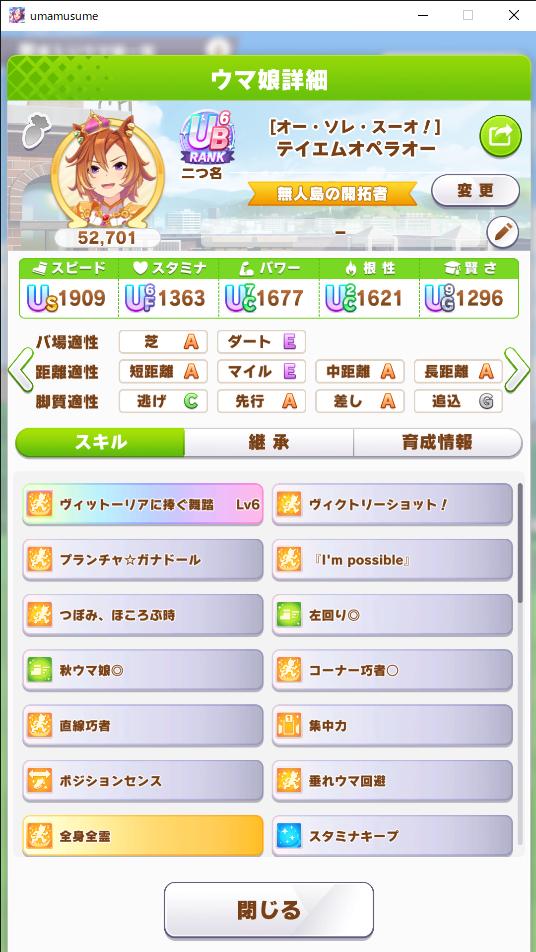 | … | 15925/10/23(木)20:59:41 ID:g3ZZyei2No.1365646452そうだねx10 1761220781039.png-(30853 B) ![]() ちなみに坂がない上にウオッカにウオッカを使えない問題があってマジふざけんなよ…ってかんじです |