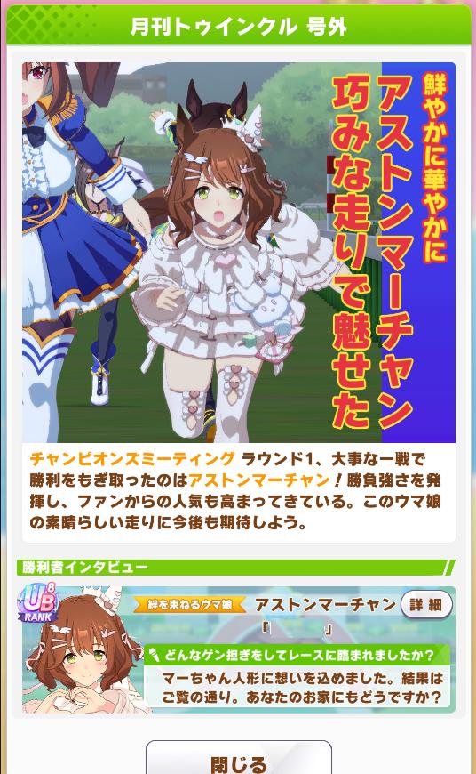 | … | 25525/10/23(木)21:28:49 ID:TzmV4iXwNo.1365657128+私も高柳さんにオグリキャップ役としてずっと走ってくれてありがとうと思ってバースデーイベント行きましたね… |