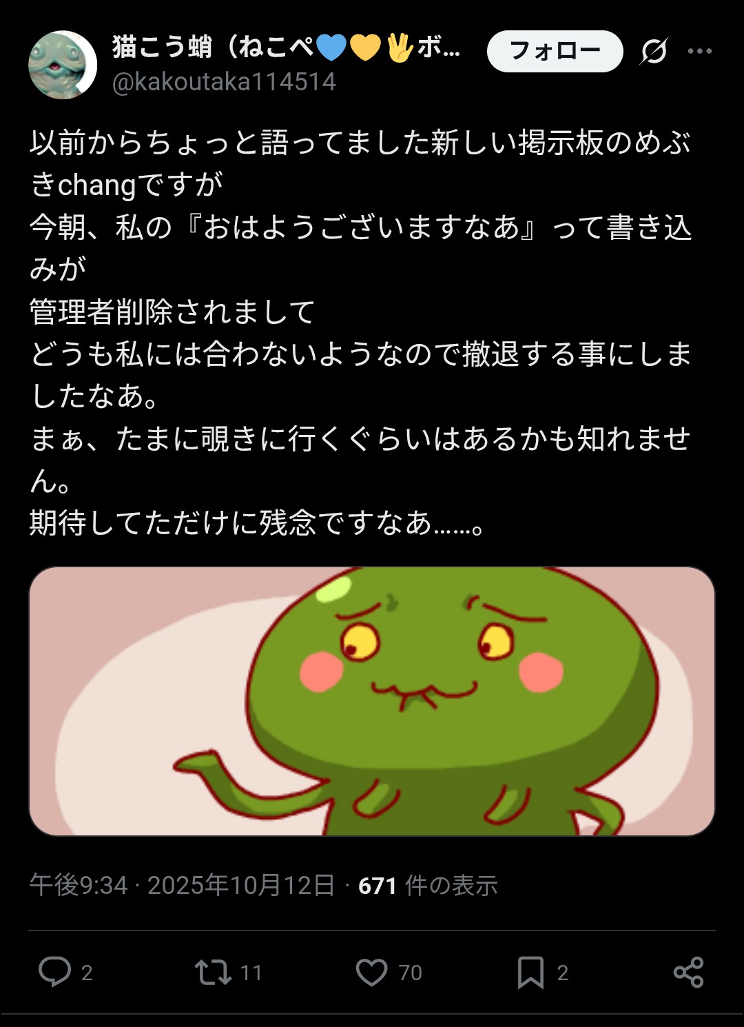 | … | 100025/10/26(日)09:32:35No.1366418967+おっぱっぴー |