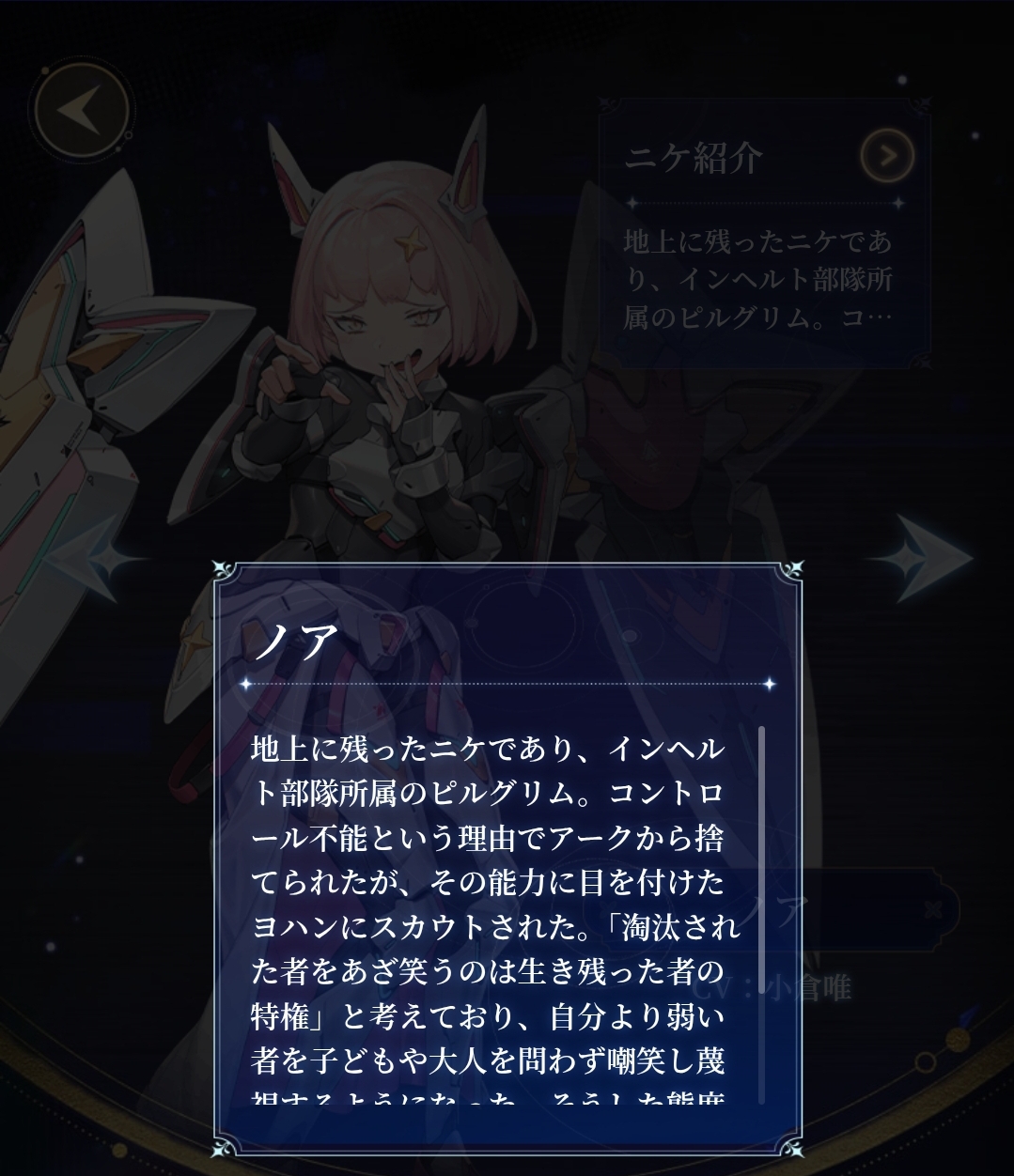 | … | 3825/10/27(月)08:30:58No.1366754231+>最近全キャラ面談20回埋めやってるんだけど久々のノアとの面談で機械にしないのって問いかけに人間のまま強くなりたいとか答えてて笑っちゃった |
