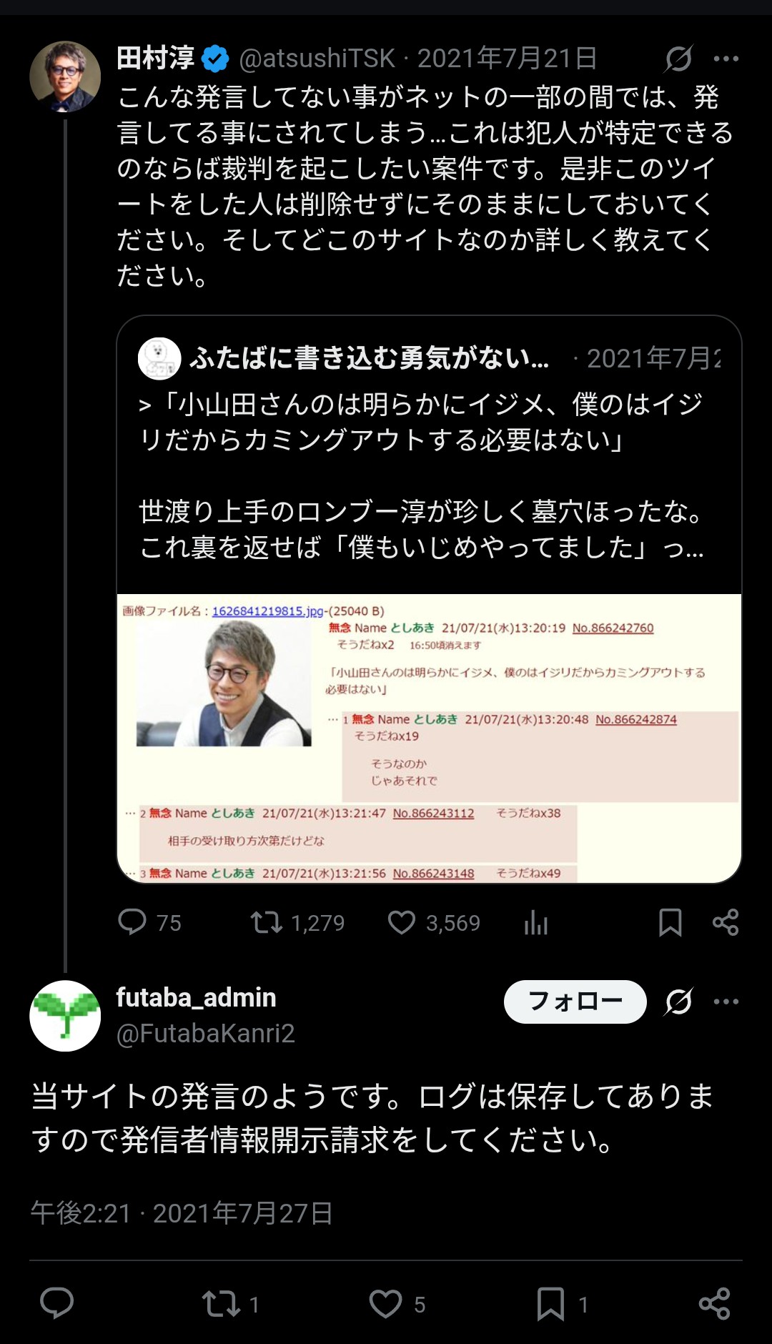 | … | 1725/10/27(月)02:02:25No.1366731556+まだ逮捕されてないの? |