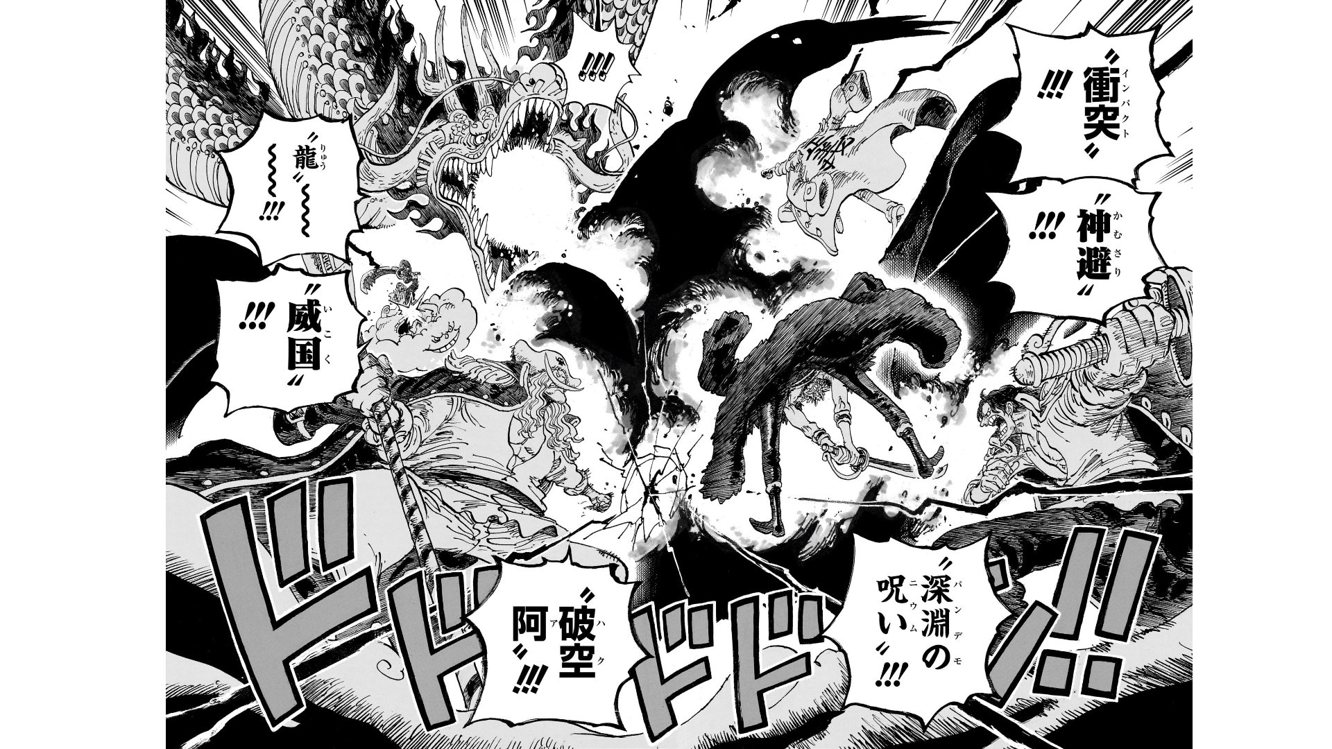 | … | 11925/10/27(月)20:29:25No.1366919307+カイドウ他のみんながかっこいい技名叫んでるから自分も真似してるの和む |