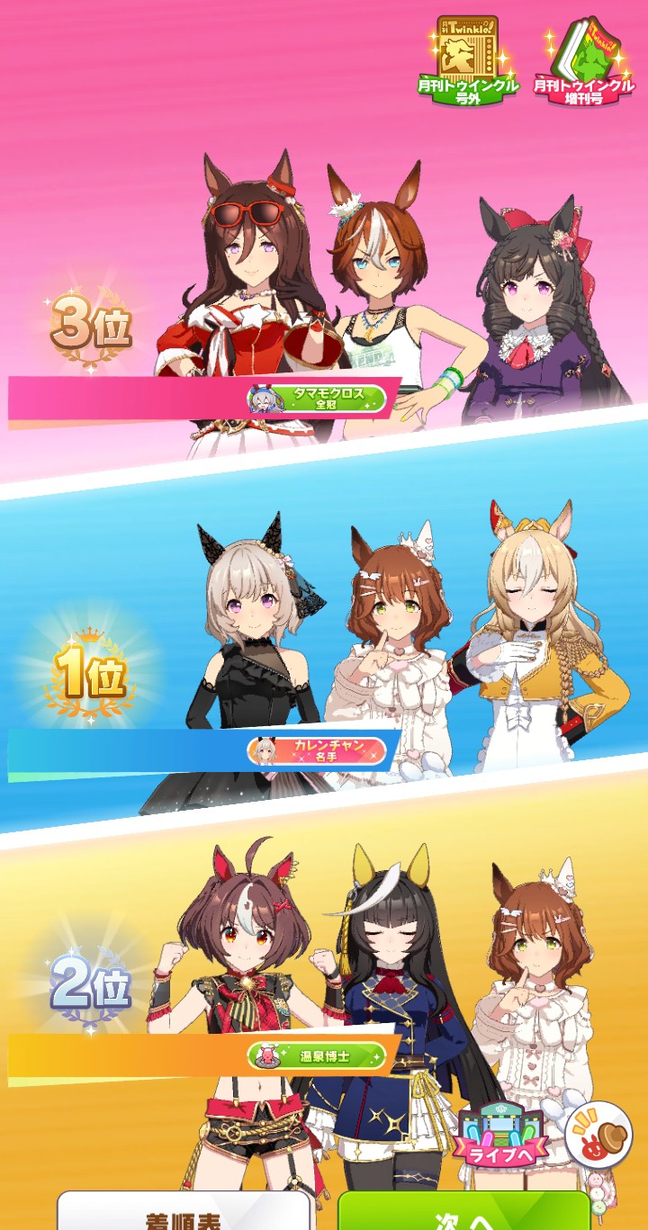| … | 8725/10/28(火)18:39:32 ID:.ki7xmVYNo.1367191518+今回は多分シナリオ衣装でしょうし新キャラや新ウマ娘の発表がなさそうなぱかライブは平穏な気持ちで見られます |