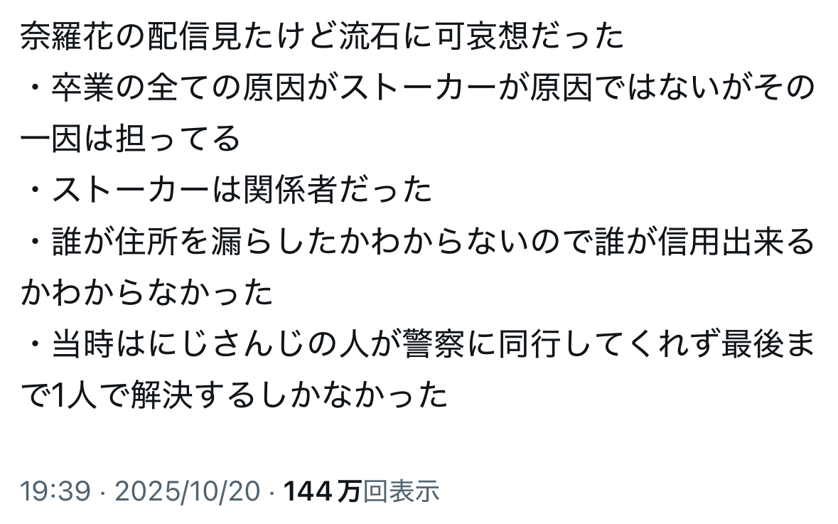 そういやライバーのストーカーの話はどうなったの
