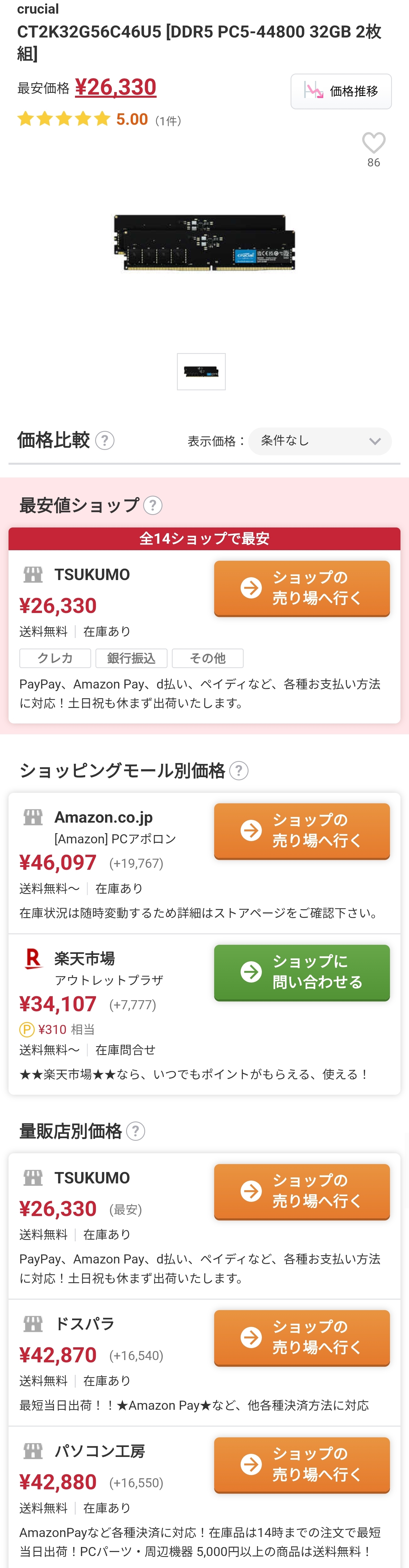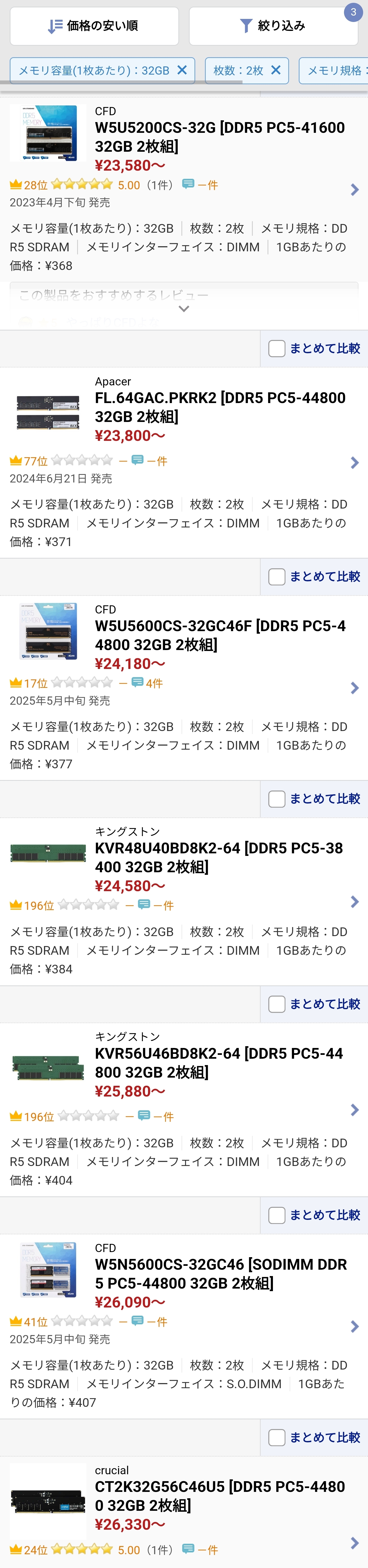 | … | 18025/10/29(水)18:46:23No.1367516407+32GBx2はまだ2万前半のが残ってるけど64GBx2は元々数少ないのが速攻で売り切れてしまった |
