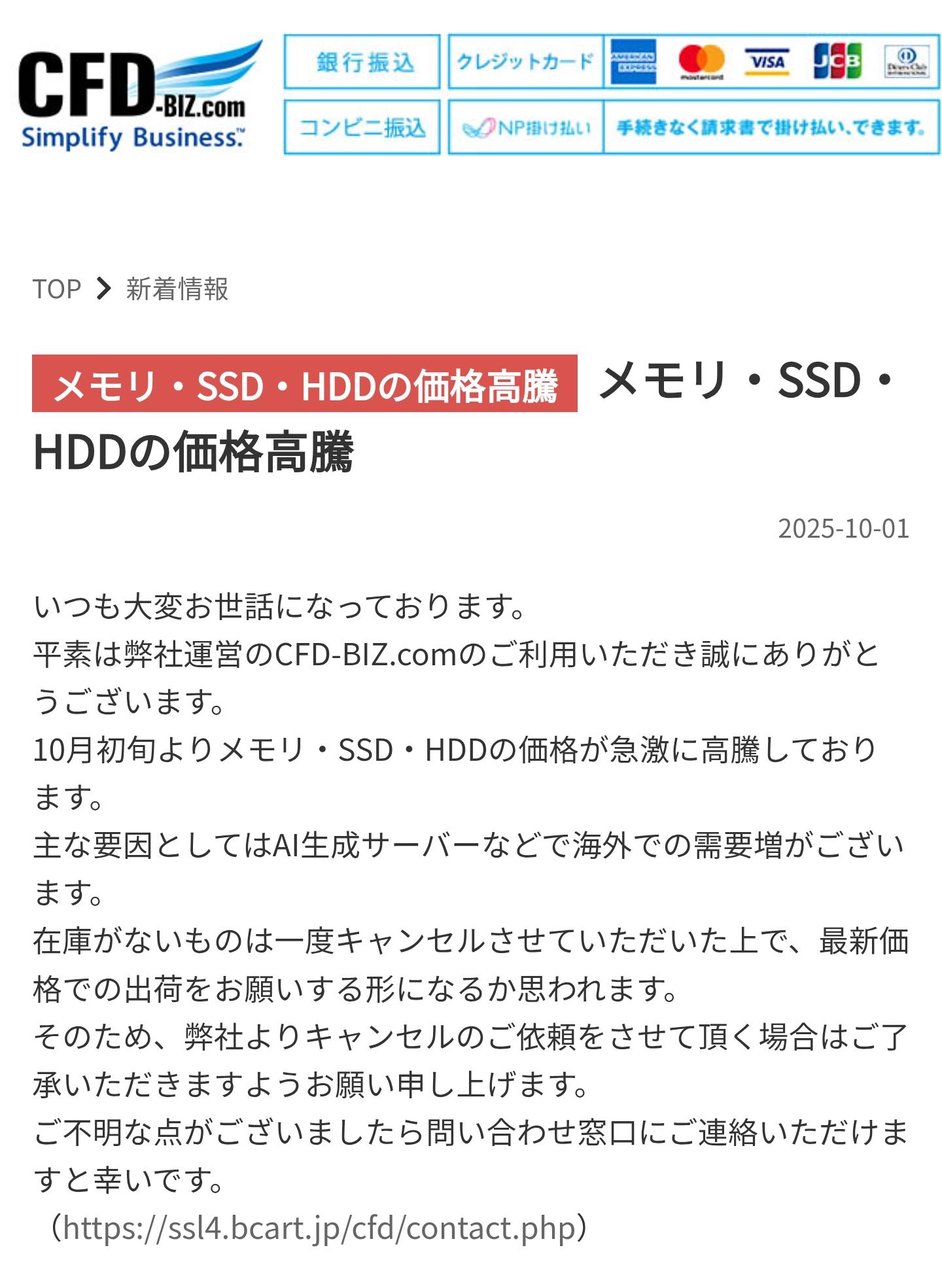 | … | 15925/10/29(水)18:37:56No.1367513848そうだねx1>NANDのスポット価格も毎週20%上がってるのでSSDもそろそろやべえぞ |