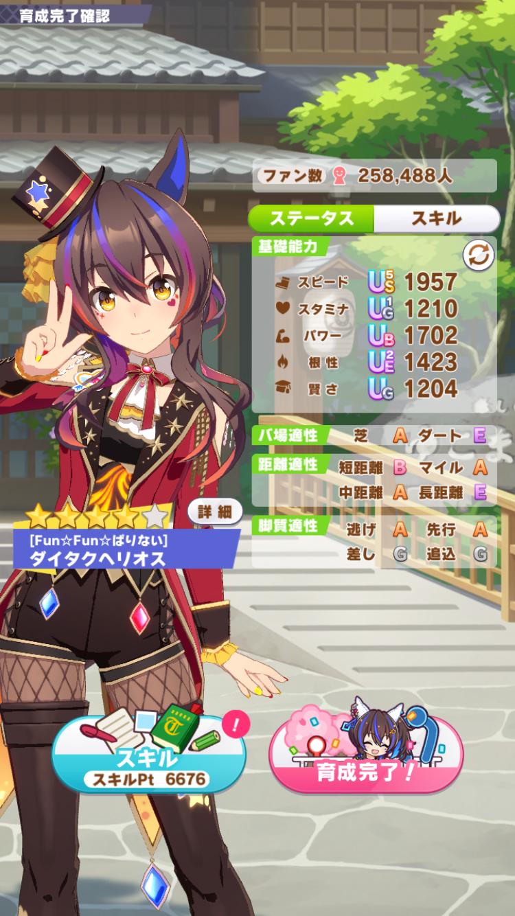 | … | 28425/10/29(水)19:55:55 ID:GY4B.HHANo.1367539943+ろくなサポカ持ってないので今回のシナリオでも頑張ってオール1200越えが出来たら嬉しいです |