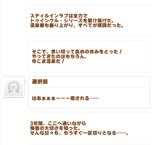 | … | 25825/10/29(水)19:45:26 ID:MnaR9p1ANo.1367536162+温泉シナリオよく分かりません!シナリオリンクの子がいないと辛いんでしょうか…? |