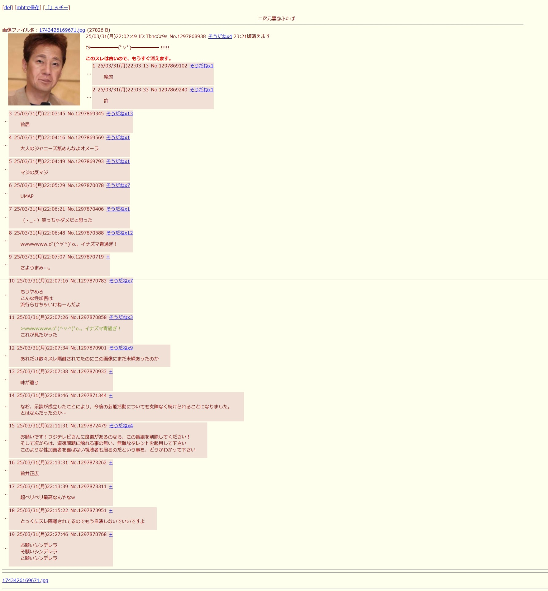 | … | 14425/11/02(日)00:11:41No.1368568881+20年前から知らないおっさんだったから |