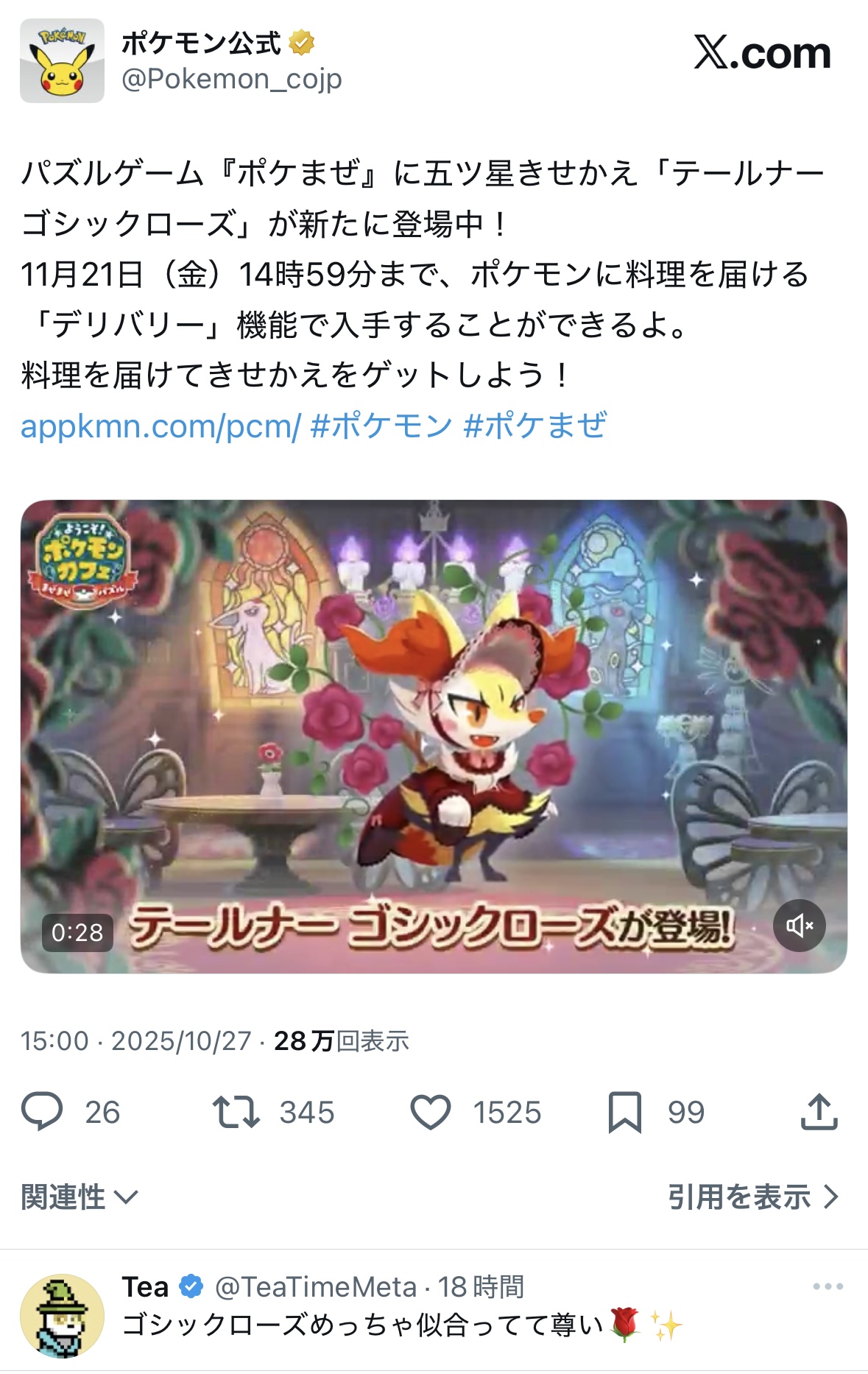 | … | 2025/11/03(月)11:08:54 ID:FI9/LhGcNo.1369043407+>マフォクシーは西洋の寓話とかに出てくる魔女って感じ |