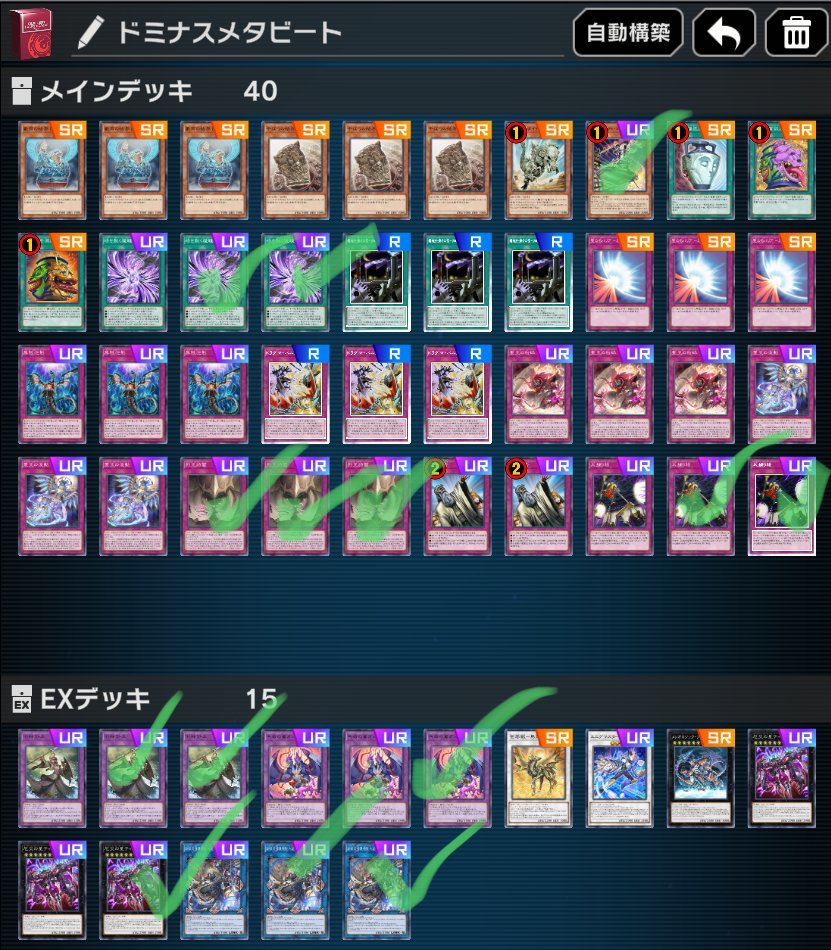 | … | 9225/11/03(月)13:36:20No.1369082476+咎が強いから神罠と統括者突っ込んで相性のいいリジェネシス入れて…ってやってるとドミナス関連が抜けた |