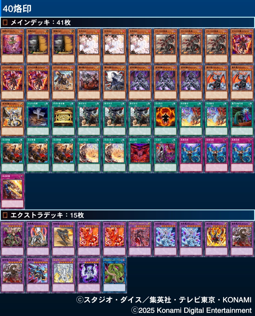 | … | 17425/11/03(月)20:32:33No.1369210285+じゃあ最強の烙印デッキも貼ってくれよ |