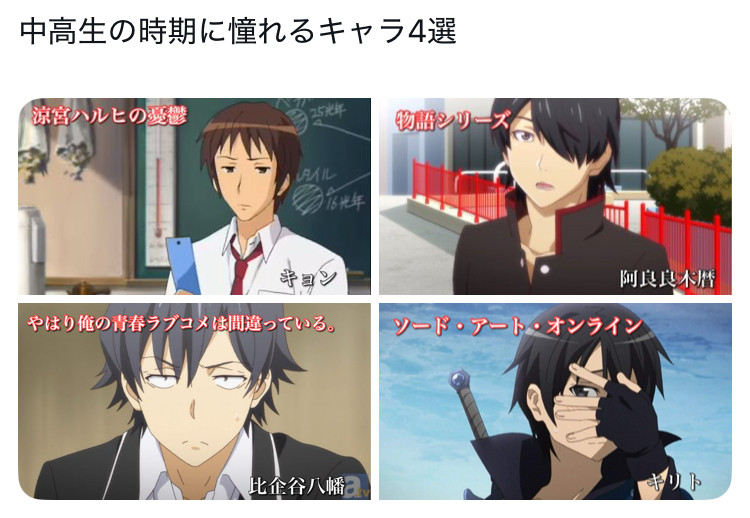 | … | 4525/11/04(火)19:13:33No.1369480842+スレ画はなんか全員やれやれ系に見えたからあんま憧れはなかったな… |