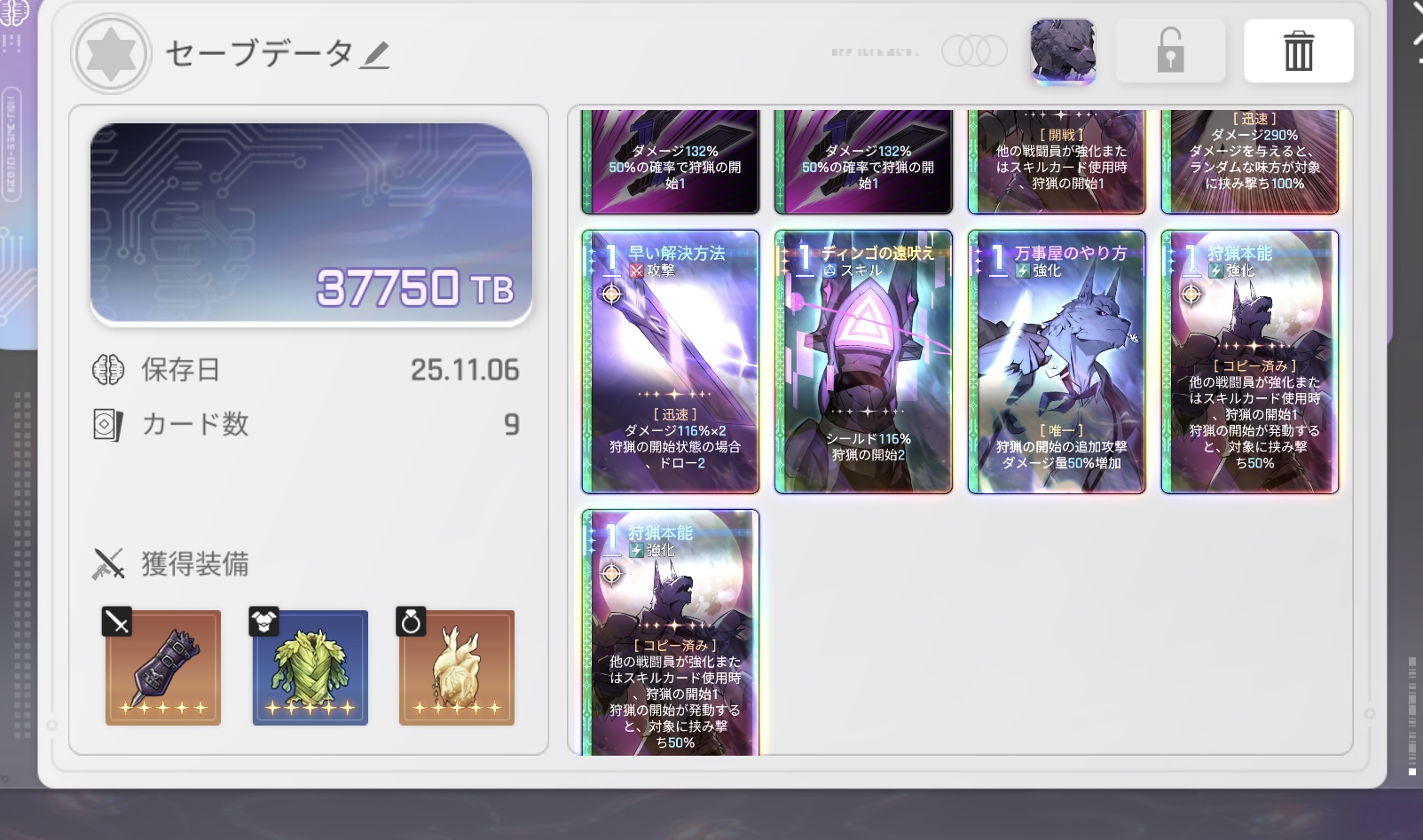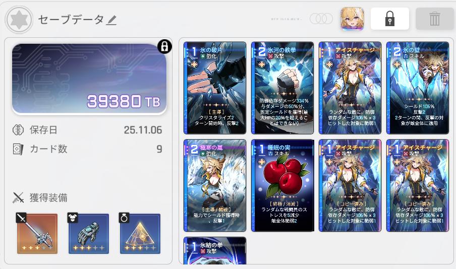 | … | 1025/11/06(木)17:33:49No.1370026147そうだねx2>今一よくわかってないけどメイリン以外の基本カードって全部消した方がいいの? 使わないなら消した方がいいけど低難易度のうちは結局セーブデータ作ったら返ってくるよ |