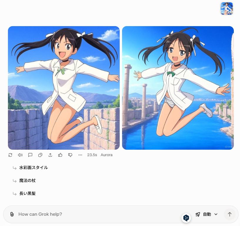 | … | 10825/11/07(金)16:55:26No.1370311248+チャットの方で全身レオタードでGrokくんと相談しながら再現したいポーズとシチュエーションを吟味して |
