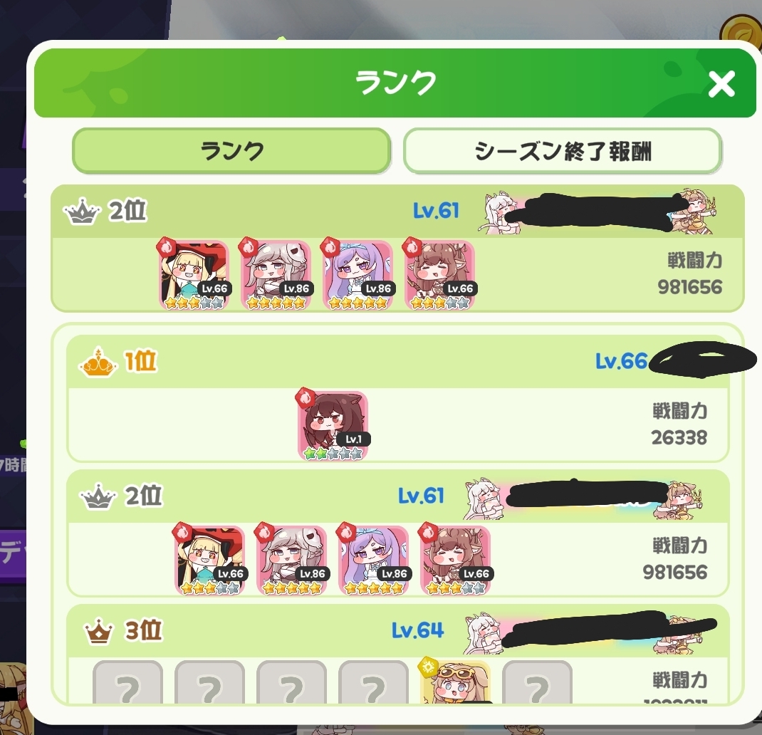 | … | 1225/11/08(土)20:46:10 ID:zXGSEFlkNo.1370724859+ようやく総戦力が100万を超えました! |