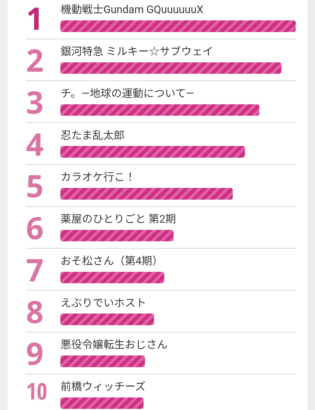 東京アニメアワード現在の順位このスレは古いので、もうすぐ消えます。
