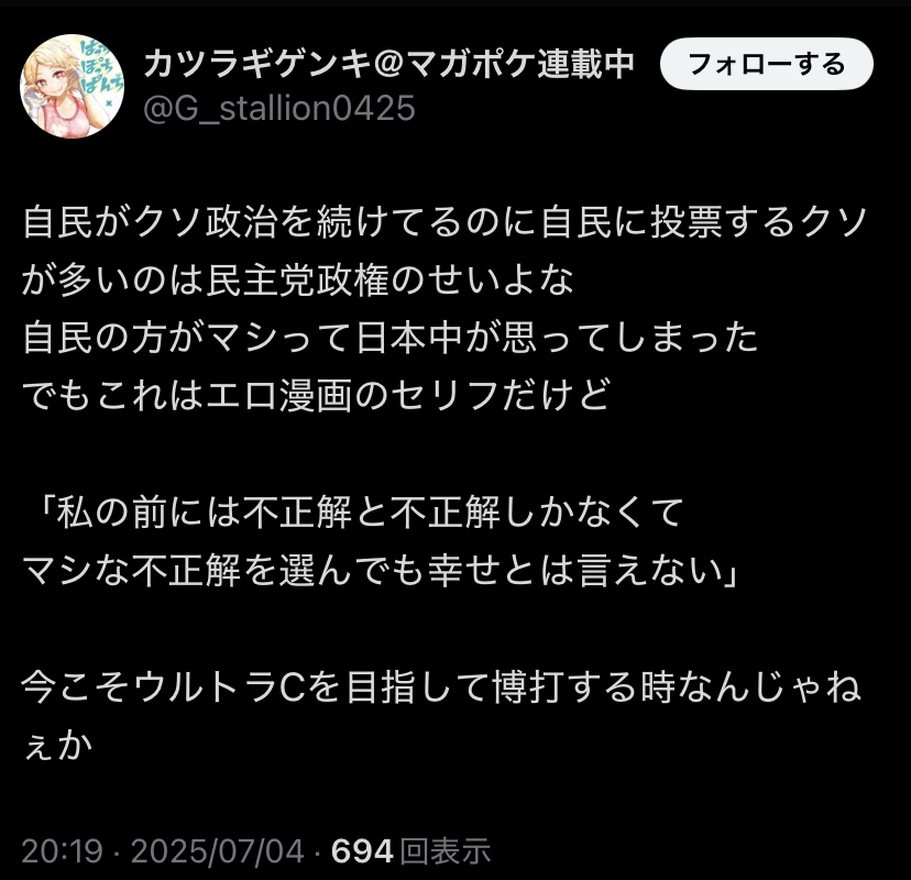 | … | 45325/11/09(日)21:20:58No.1371116195+>「狂気纏ってようが素人がプロに簡単に勝てませんよ」はそうなんだけど |