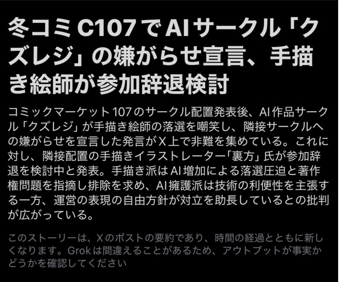 | … | 525/11/10(月)18:48:06No.1371356892そうだねx27Grok要約記事でスレ立てる人、全員馬鹿です。 |
