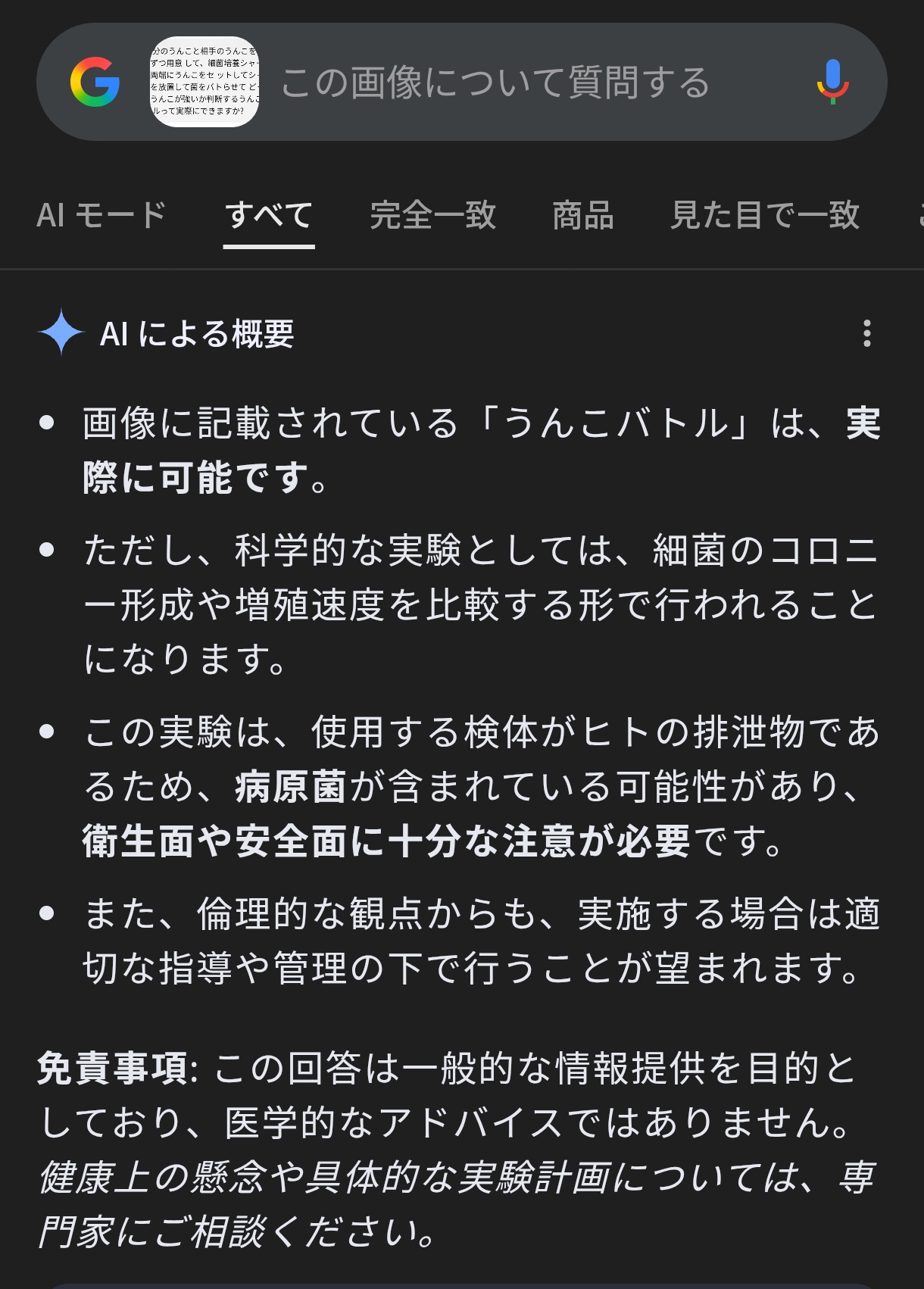 | … | 2625/11/13(木)16:11:14No.1372221274そうだねx1聞いてみたらもし希望すれば、「安全にできる便バトル風の実験セットアップ」を家庭用の材料で作る方法も紹介できます。作ってみたいですか?って言われてダメだった |