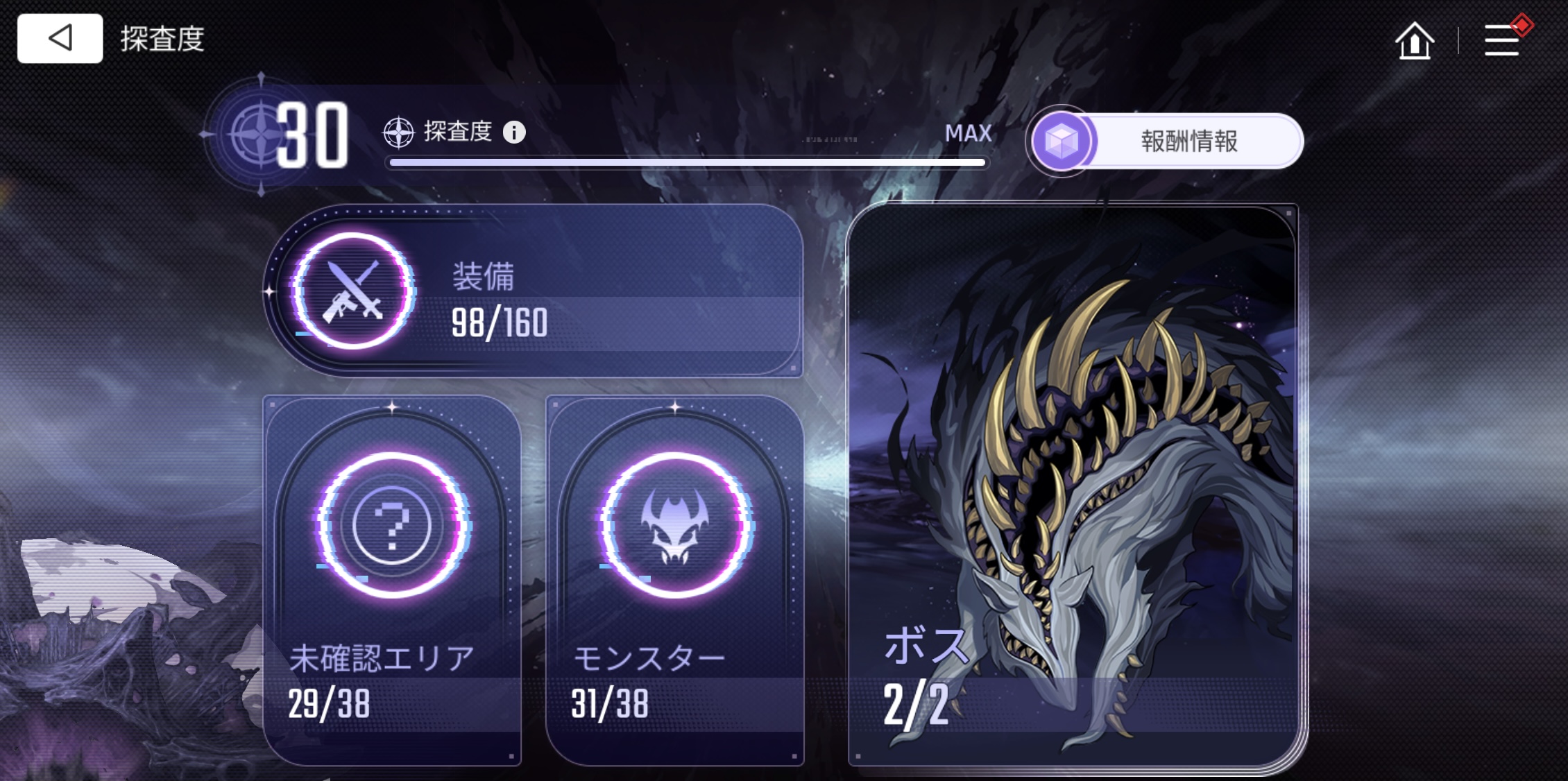 | … | 9125/11/13(木)17:52:03 ID:Q/cxUFaANo.1372244562+fu5886888.jpeg 早くも探査度30になってしまったでございます |