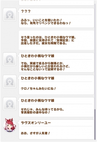 | … | 7325/11/13(木)19:02:28No.1372265070そうだねx1>メイショウとかテイエムとかナリタとかアグネスとかetcな既にウマ娘に出てるところの他の馬達中々追加されないね |