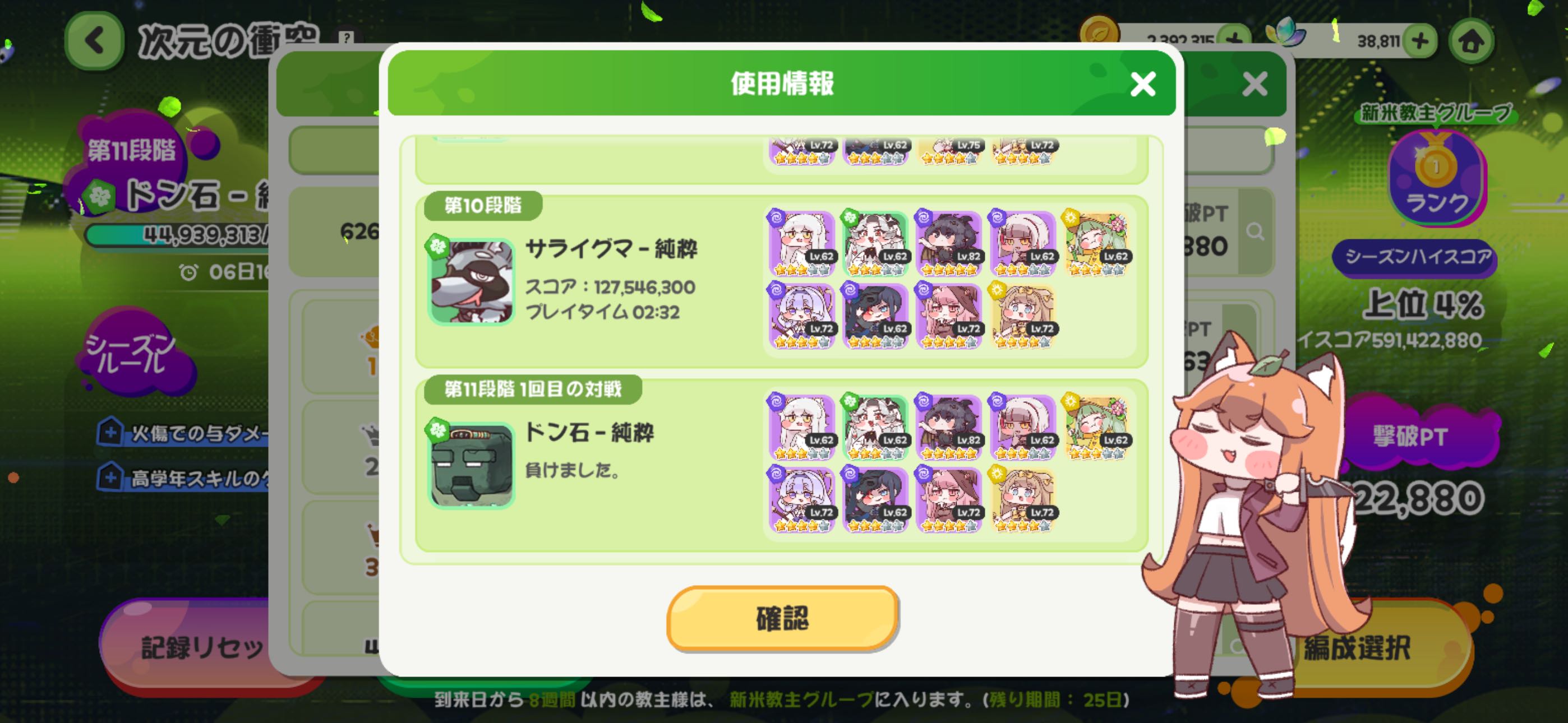 | … | 4025/11/13(木)19:10:25 ID:VT1B16GgNo.1372267569+>ドリランドで初めて100万点を超えたから誉めてほしいにゃん |