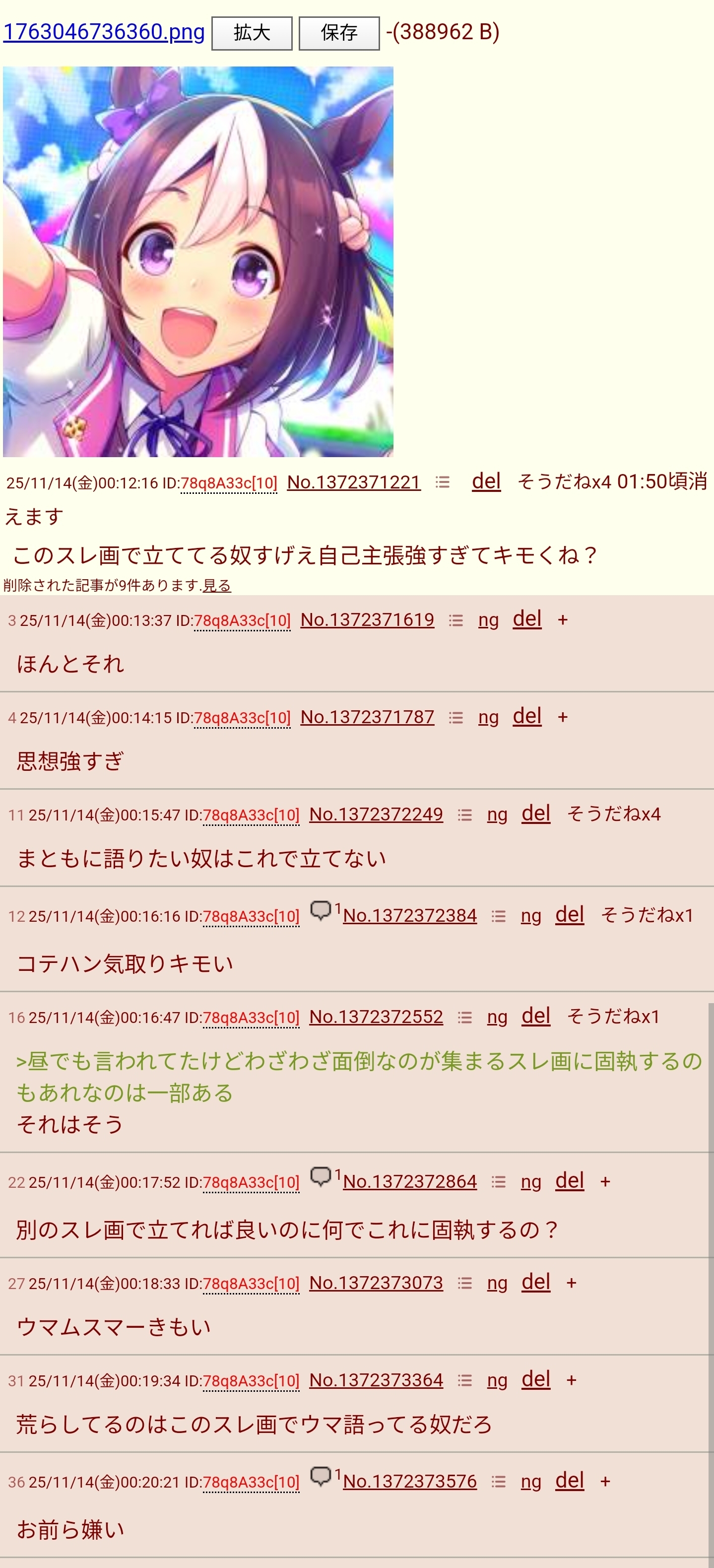 | … | 1025/11/14(金)15:47:08No.1372508495そうだねx18>今後は黙delを心掛けてようね |