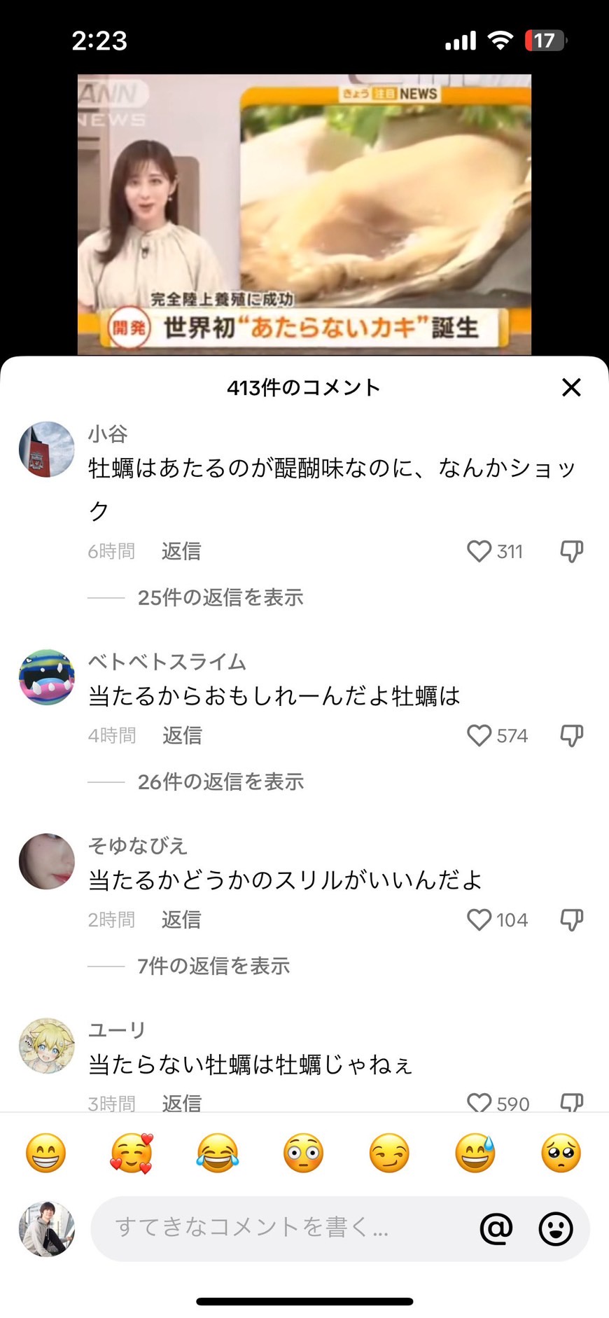 | … | 4225/11/15(土)21:28:08No.1372944763そうだねx2当たらないって言われてる牡蠣が美味しくなかったからそういう認識がある |