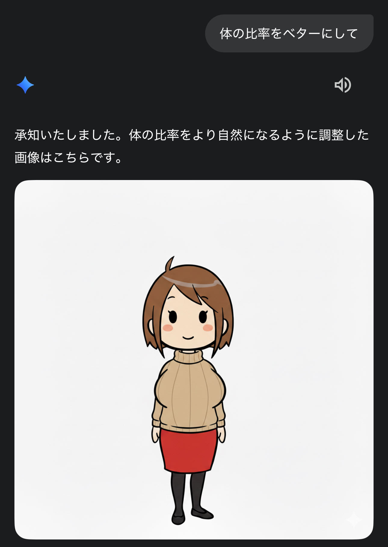| … | 1625/11/16(日)19:28:06No.1373252303+>Geminiくんはこれぐらいが自然と思ってるのか… |